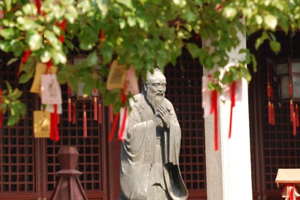 Þessi tilvitnum er skráð á stólpa í Konfúsíusarhofi í Shanghai. Önnur okkar kom í hofið vorið 2008 og skrifaði þetta hjá sér. Annars var heimsóknin eftirminnilegust fyrir friðsældina. Fyrir utan örfá ungmenni sem sögðust vera nemendur í konfúsískum fræðum var enginn á staðnum. Það er ekki oft sem slíkt gerist í margmenninu í Kína.